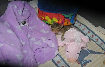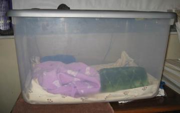with her heating pad under one half. This enclosure is the step between the tiny critter keeper