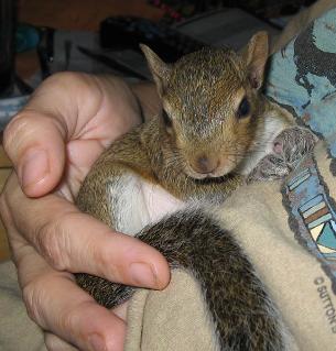 toddler squirrel, a little boy this time, in a bit better shape but very thin as well. It's believed