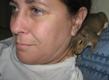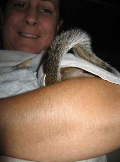 'neighbor' and fellow carriage driver about ONE orphan squirrel in her yard. She described a